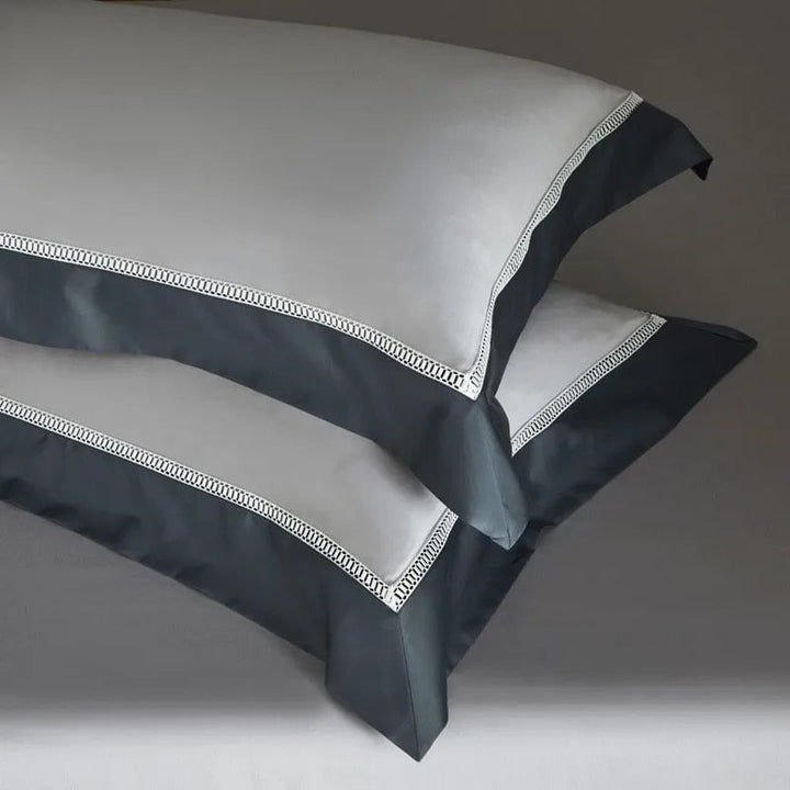 Elevate your sleep experience with the Essence 1000 TC Egyptian Cotton Duvet Cover Set from Roomie Design. Luxuriously soft and adorned with a sleek border and simple stitches, it brings timeless elegance to your bedroom. Choose from a variety of colors to complement your style, and indulge in comfort with Roomie Design's commitment to quality.