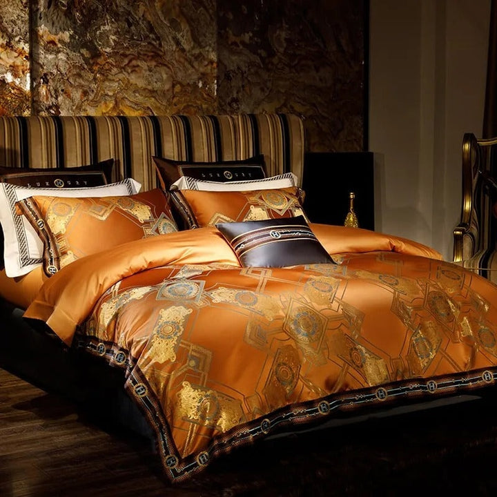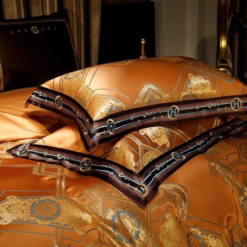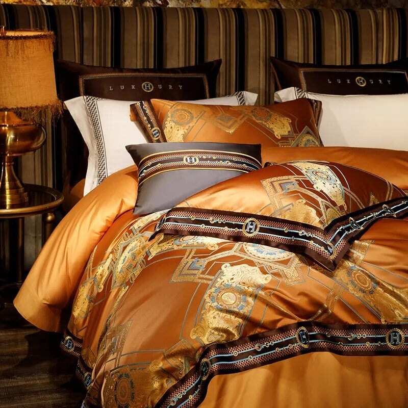 • Tailored Luxury: Rich amber-gold tones, regal embroidery, and refined finishes create a designer look that elevates any interior.