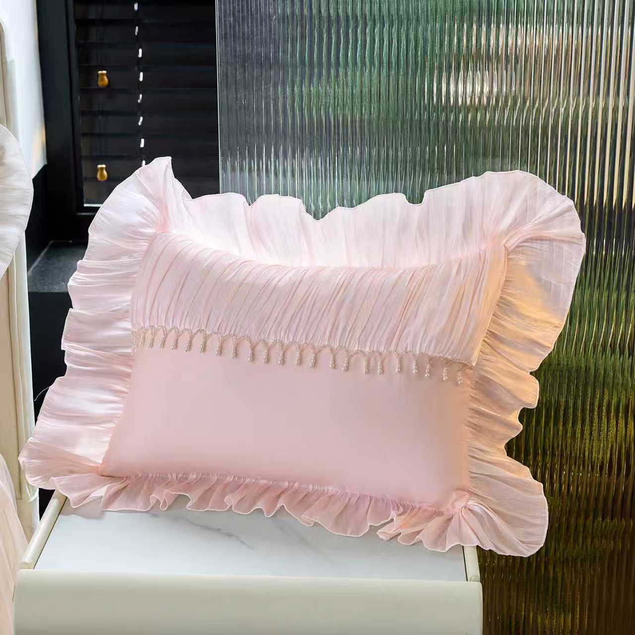 Maison Royale Pink Ruffled Duvet Cover Set