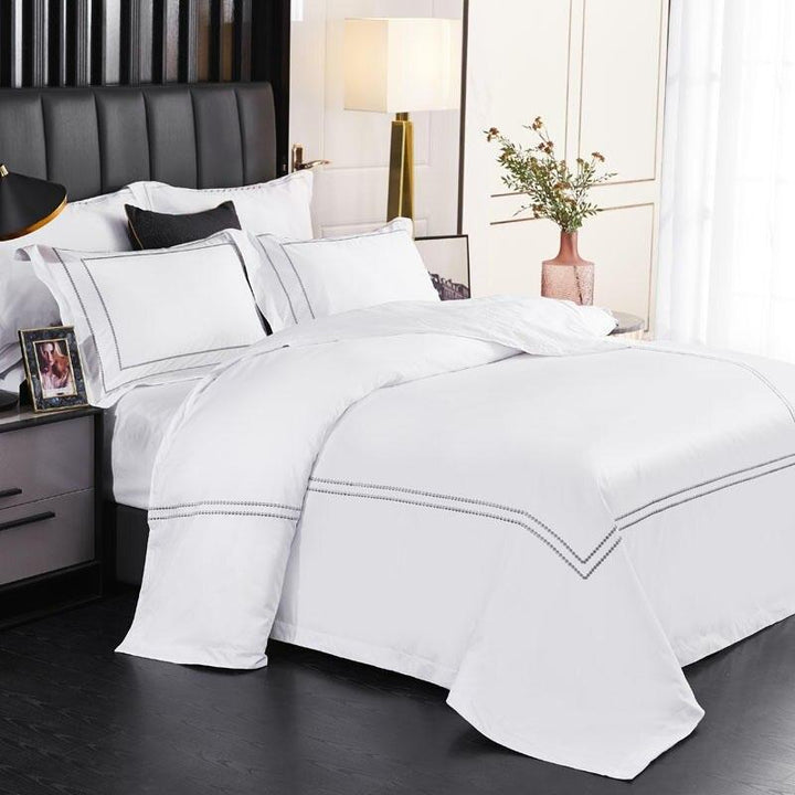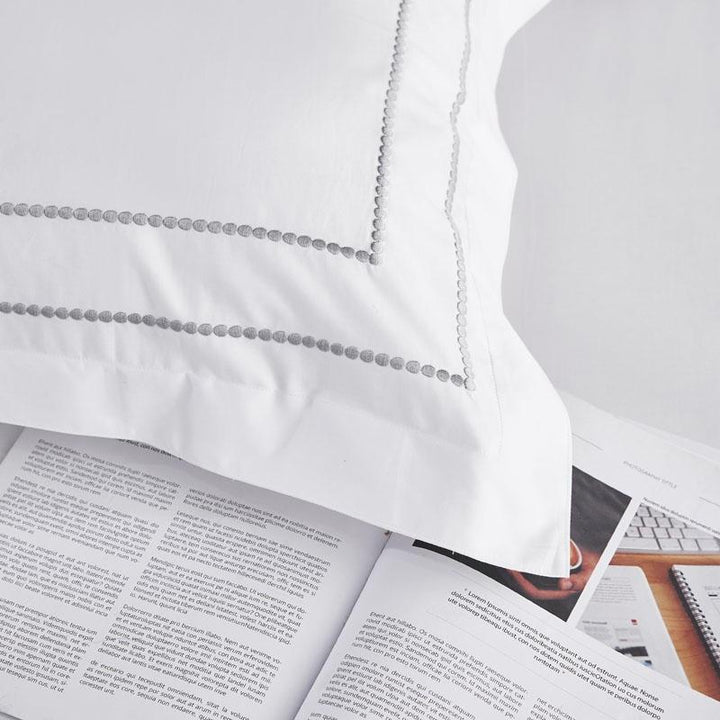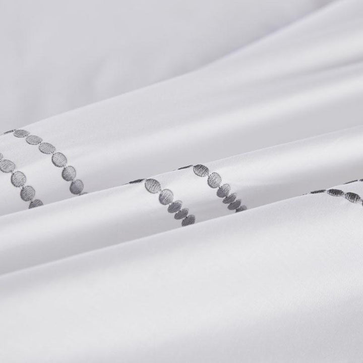 With a thread count of 600, this duvet cover is made to last, ensuring durability and long-lasting use. The beautiful dotted 2 embroidered lines give a touch of elegance and sophistication to your bedroom, making it the perfect addition to your home decor.