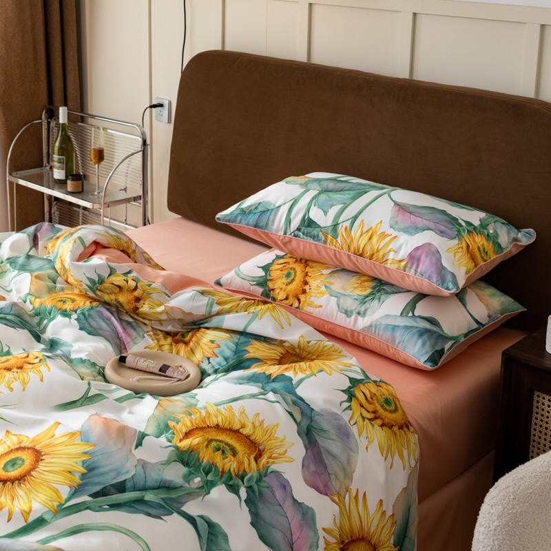 Looking to add a bit of sunshine to your bedroom? The Sunflowers Duvet Cover Set is just right for you. Made from 100% Egyptian cotton sateen, 500 thread count, it is wonderfully soft, and adorned with beautiful sunflowers. Team with the matching pillowcases for a stylish look.