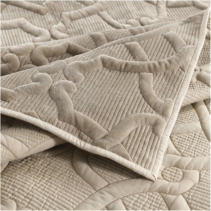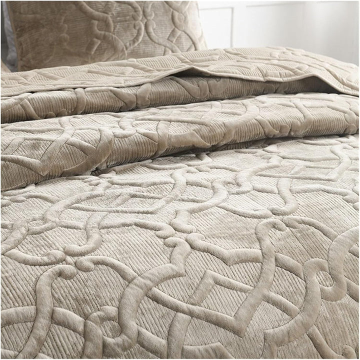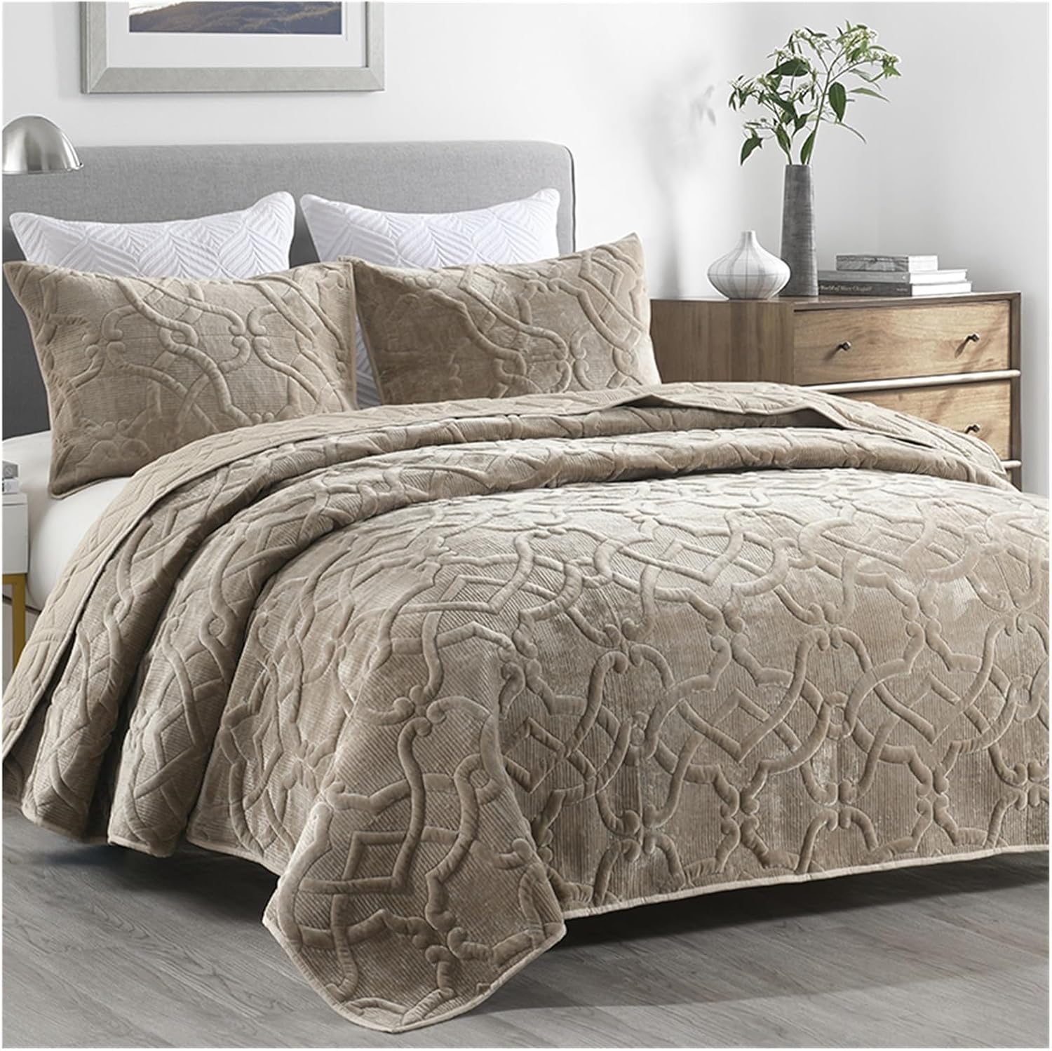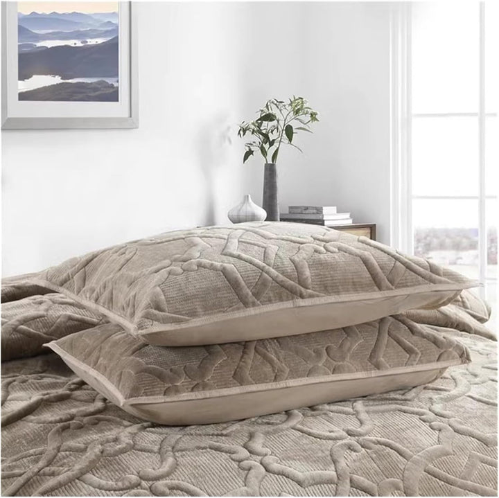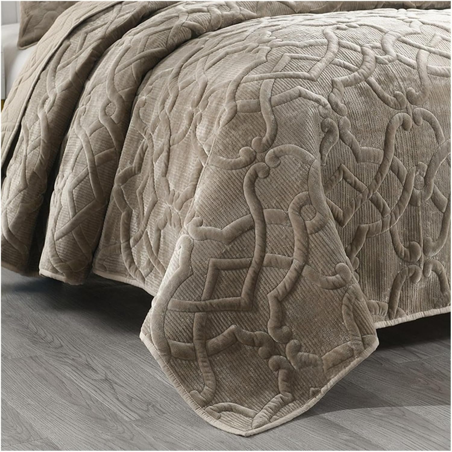 Transform your bedroom with the elegant Brown Eclise Bedspread Set, featuring a thick, luxurious bedspread and two matching pillowcases. Crafted from a durable material, this set brings warmth and style to any decor while protecting your bed linens. Its contemporary twist on a classic toile pattern creates an inviting, well-loved look, making it the perfect blend of modern sophistication and timeless appeal.