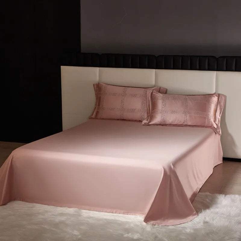 Immerse yourself in the epitome of luxury with our Geneve Pink 1000 TC Duvet Cover Set. Meticulously crafted from premium Egyptian cotton, this 4-piece ensemble captivates with a soft pink hue, adorned with a beautiful sheen. The set features a square design and subtle patterns that exude pure opulence, creating an ambiance of sophistication in your bedroom.