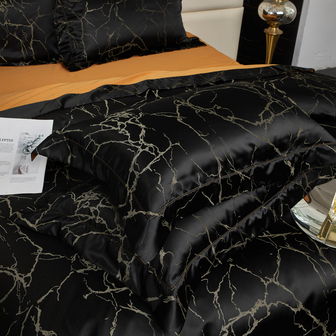 Transform your sleep sanctuary with our Black Marble Pillowcases (Set of 2), meticulously crafted to infuse a sense of luxury into every night's rest. Made from premium-quality Egyptian Cotton, these pillowcases boast a sleek black marble design that exudes sophistication and elegance. Pair them with the Black Marble Luxury Duvet Cover Set for a coordinated and opulent bedding ensemble, elevating the ambiance of your bedroom to new heights of style and comfort.