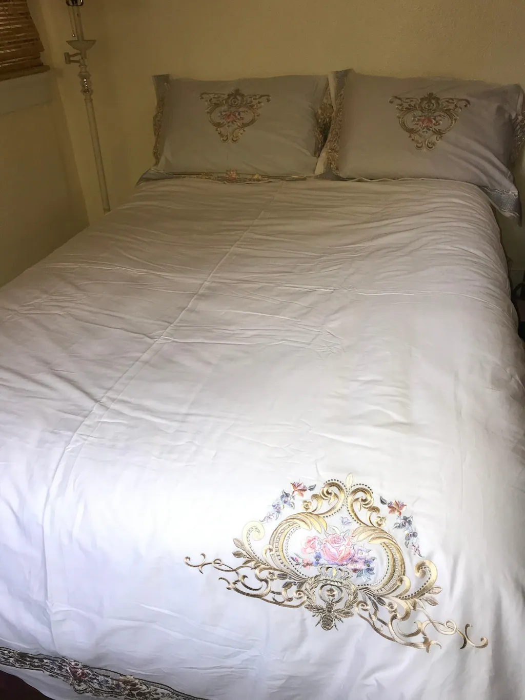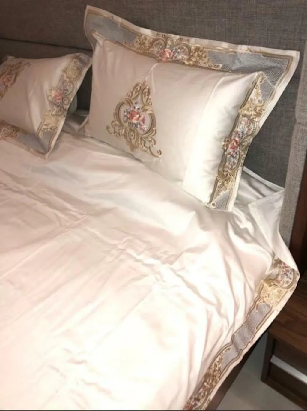 Sweet dreams are made of this. The Royal Crown Duvet Cover Set is the epitome of luxury, crafted from silky soft 1000 thread count Egyptian cotton. This set is adorned with delicate gold embroidery, adding a touch of regal elegance to your bedroom. A unique design element of this duvet cover is the off-centered crown embroidery, which creates a sophisticated and unexpected focal point that sets this set apart from the rest.