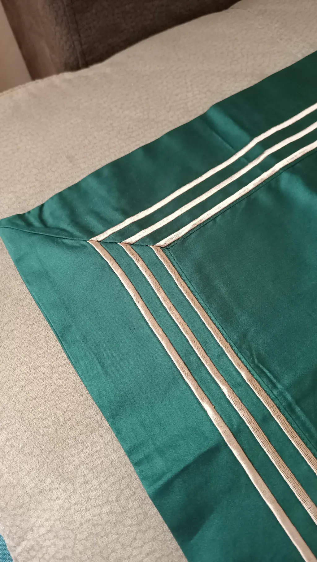 Soft and smooth with high shine, the Triplo Bourdon Duvet Cover is crafted from pure cotton poplin and embellished with a three-line embroidery.