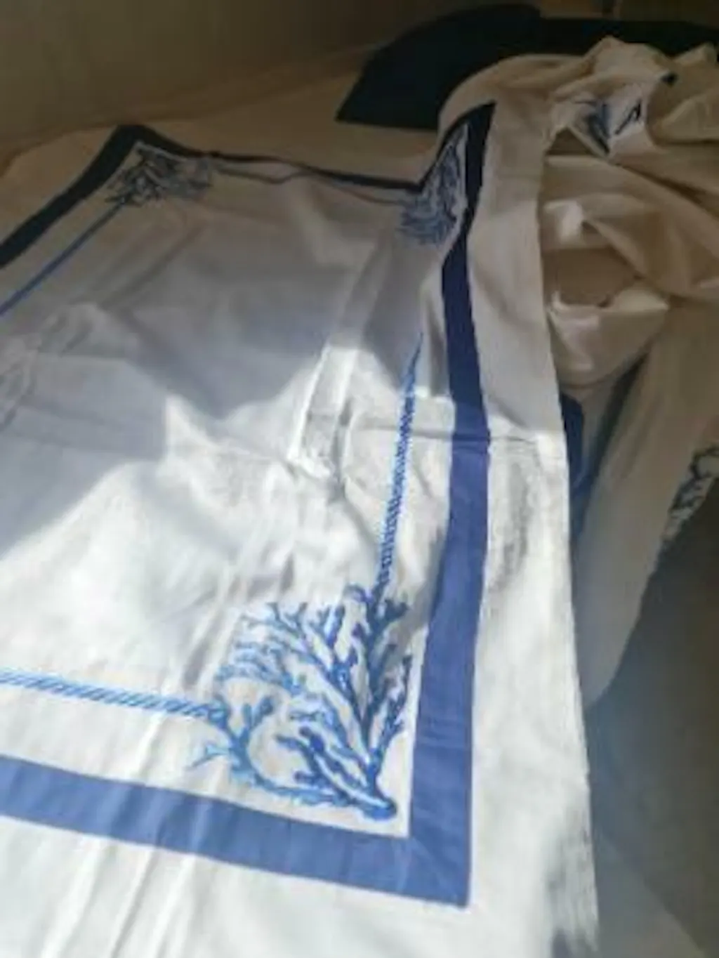 Dive into serene elegance with this exquisite duvet cover set, featuring a crisp white background beautifully embroidered with vibrant blue sea motifs—corals, sea stars, and other ocean treasures. This artistic design brings a coastal charm to your bedroom while effortlessly pairing with a wide range of color palettes and decor styles. Crafted from durable, ultra-soft, and sustainable material, it offers exceptional comfort and timeless style, making every night feel like a tranquil seaside retreat.