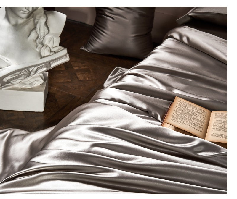 Arya Silver 25 Momme Mulberry Silk Duvet Cover Set
